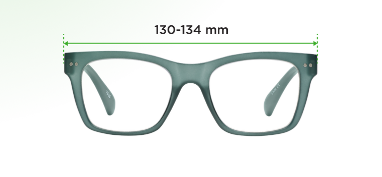 Make sure that the overall width of your glasses, which includes both lenses and the bridge, aligns closely with your temple-to-temple measurement. For example, if your temple-to-temple measurement is 132 millimeters (5.2 inches), look for glasses that measure between 130 and 134 millimeters (5.1 to 5.3 inches).